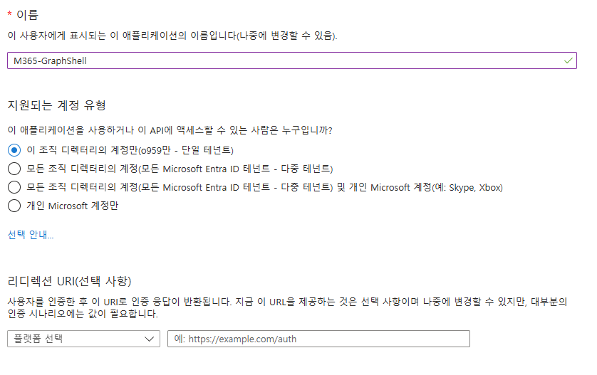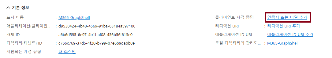 Graph Shell 연결을 위한 Azure AD 앱 생성