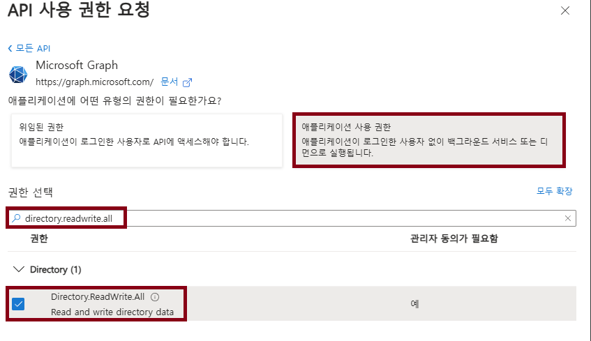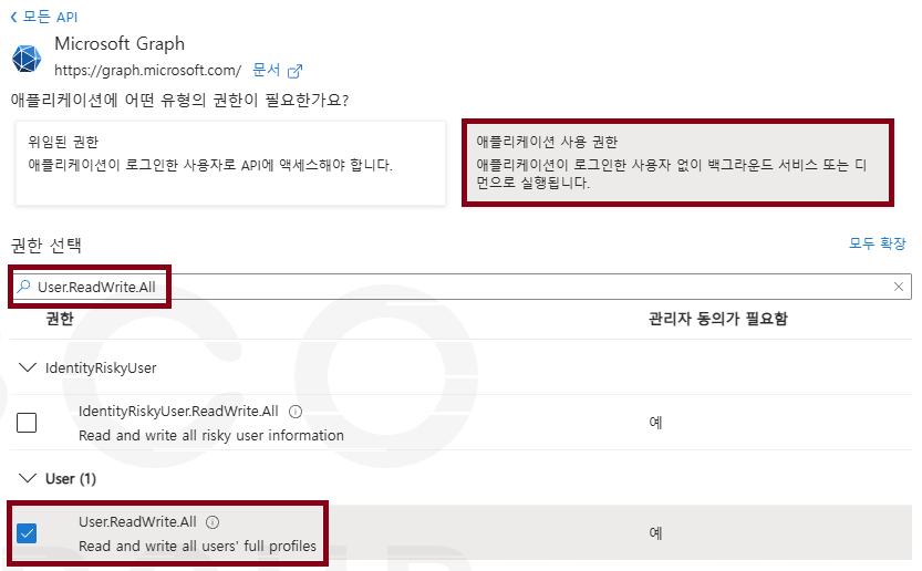 사용 권한이 필요한 권한명을 입력해서 선택해주세요
