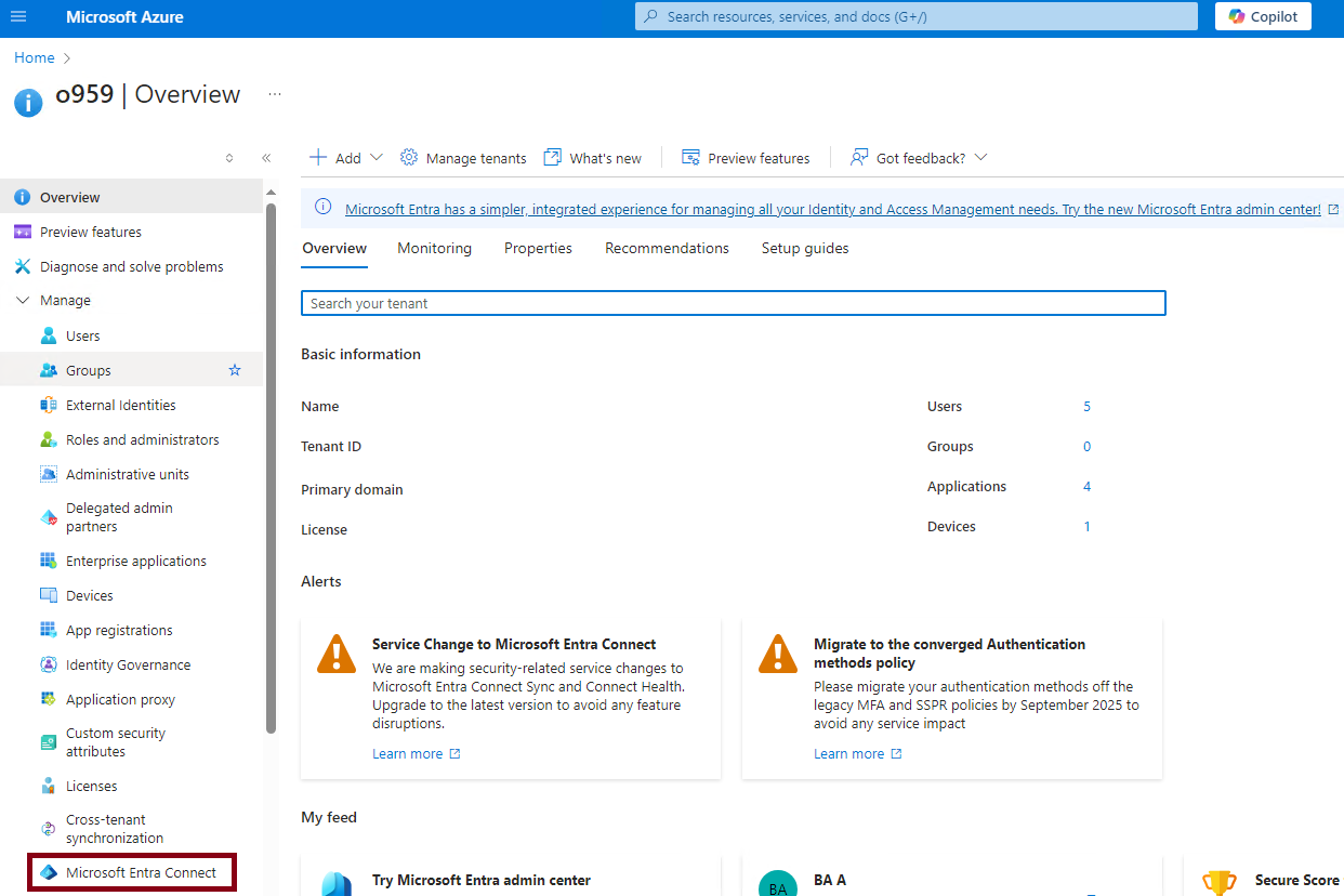 그리고 Azure 포탈에 접속한 뒤 "Microsoft Entra Connect" 메뉴 접속