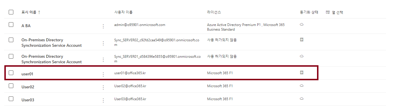 예상했던 것 처럼 User01 계정은 Cloud-Only 계정에서 Synced 계정으로 변경되었어요!!
