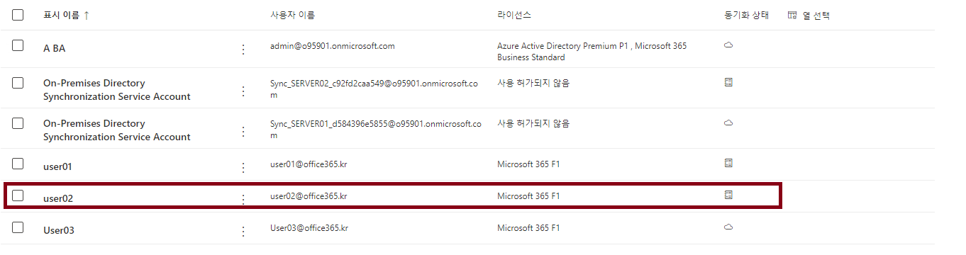 다행스럽게 예상한대로 User02 계정까지 정상적으로 동기화 되었어요!