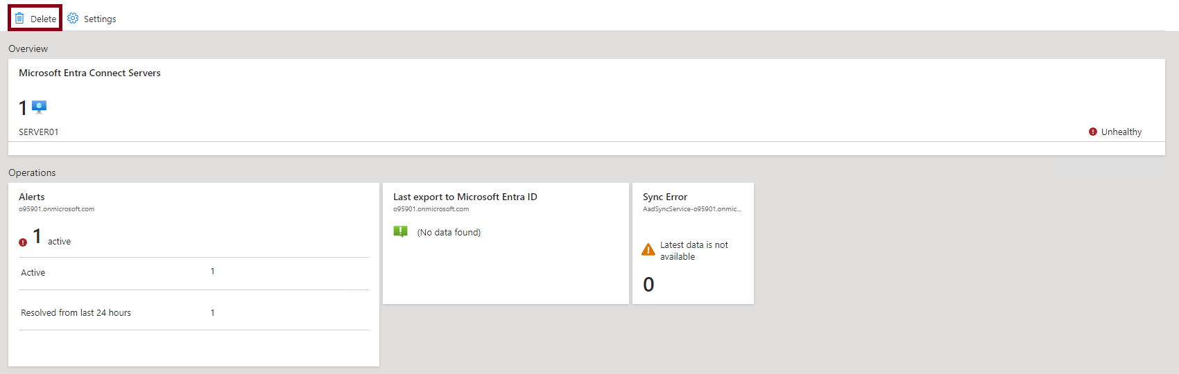 현재 삭제했던 온프레미스 AD와 계정이 된 상태이므로 우선 동기화연결을 삭제해줘야 해요