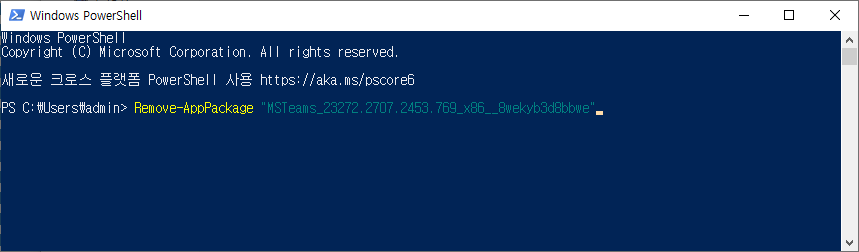 Remove-AppPackage "MSTeams_23272.2707.2453.769_x86__8wekyb3d8bbwe"
