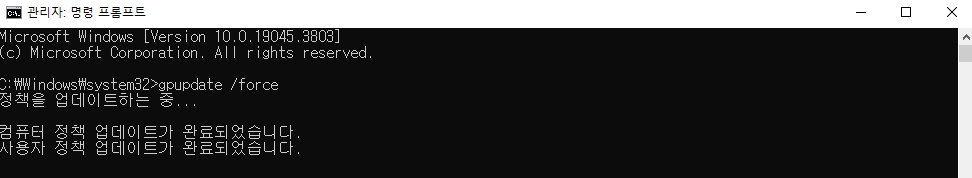 그룹정책을 업데이트 해주고