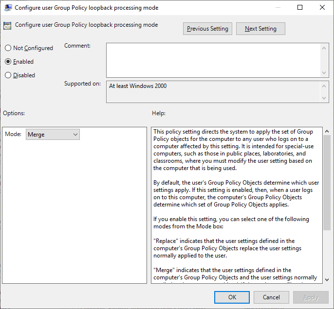 Configure User Group Policy Loopback Processing Mode