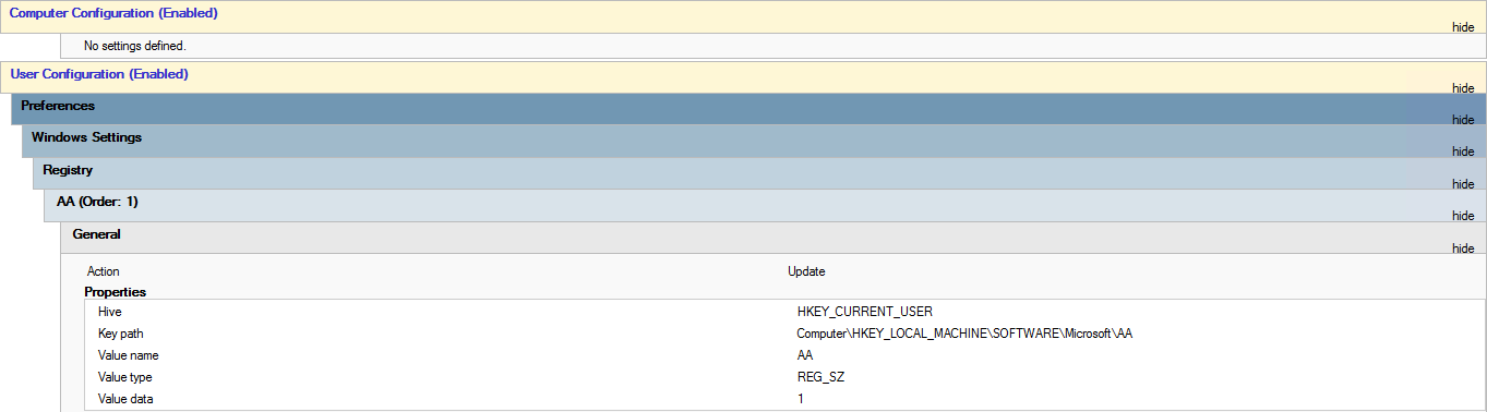 간단하게 레지스트리를 만들어주는 정책을 사용자 정책에 만들어주고요