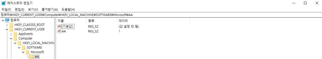 실제로 그룹 정책에 의해 레지스트리까지 추가 된것을 확인 할 수 있습니다!