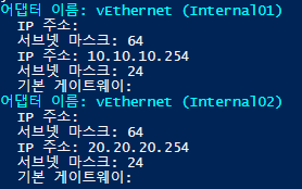Internal01과 Internal02 스위치를 사용하는 VM에서 서로 통신이 되게 하려는 목적이에요