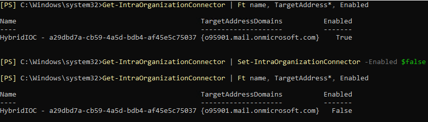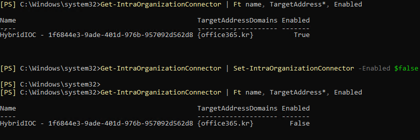 On-Premise Exchange Server에서 Hybrid 설정을 비활성화 해주세요