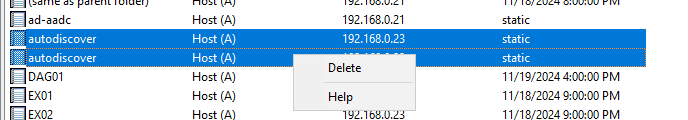 그리고 DNS에서 Autodiscover 레코드를 삭제해주세요