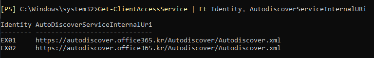 설정되어 있는 Internal Autodiscover URI를 확인해세요