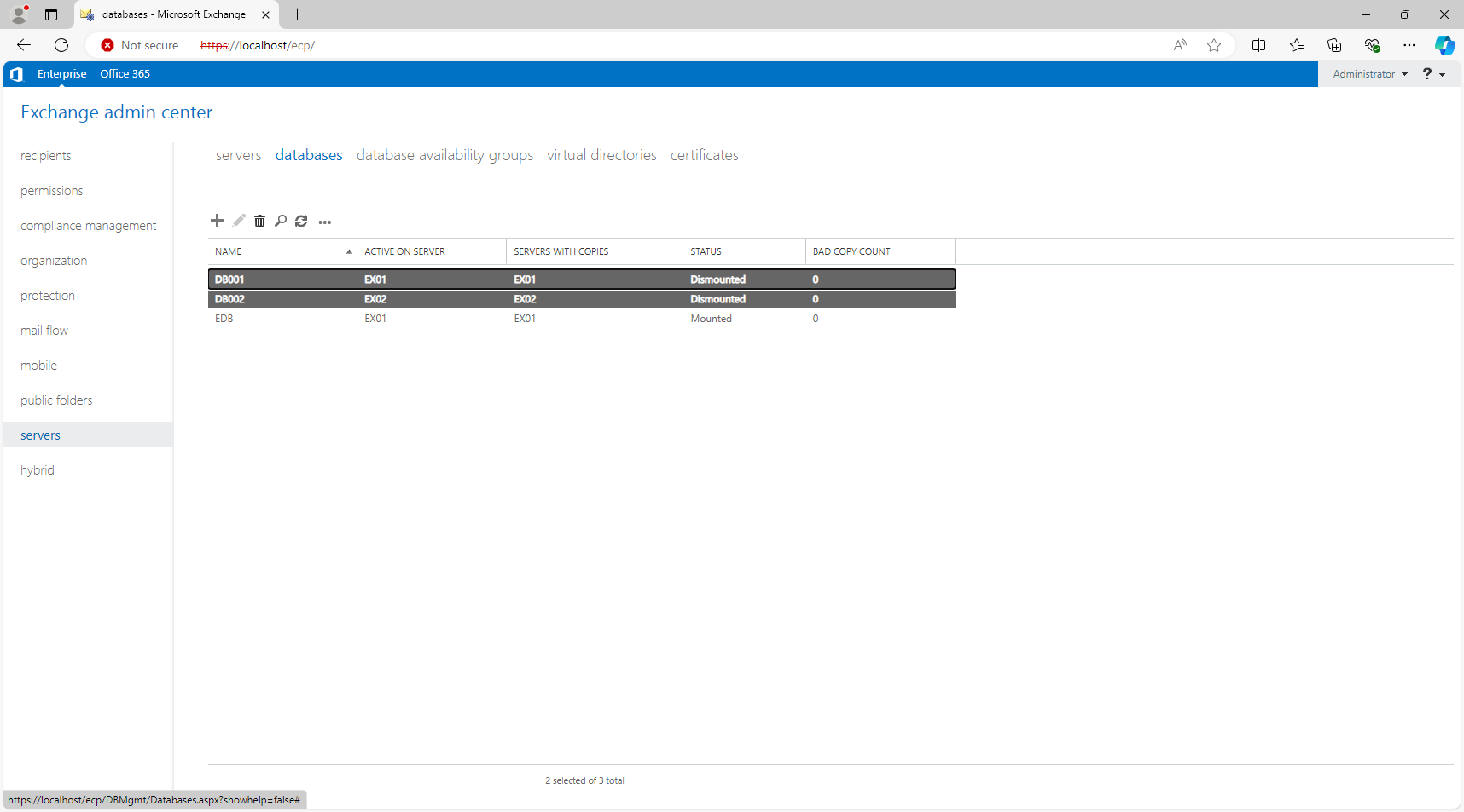 Mount-Database "EDB" -Confirm:$False