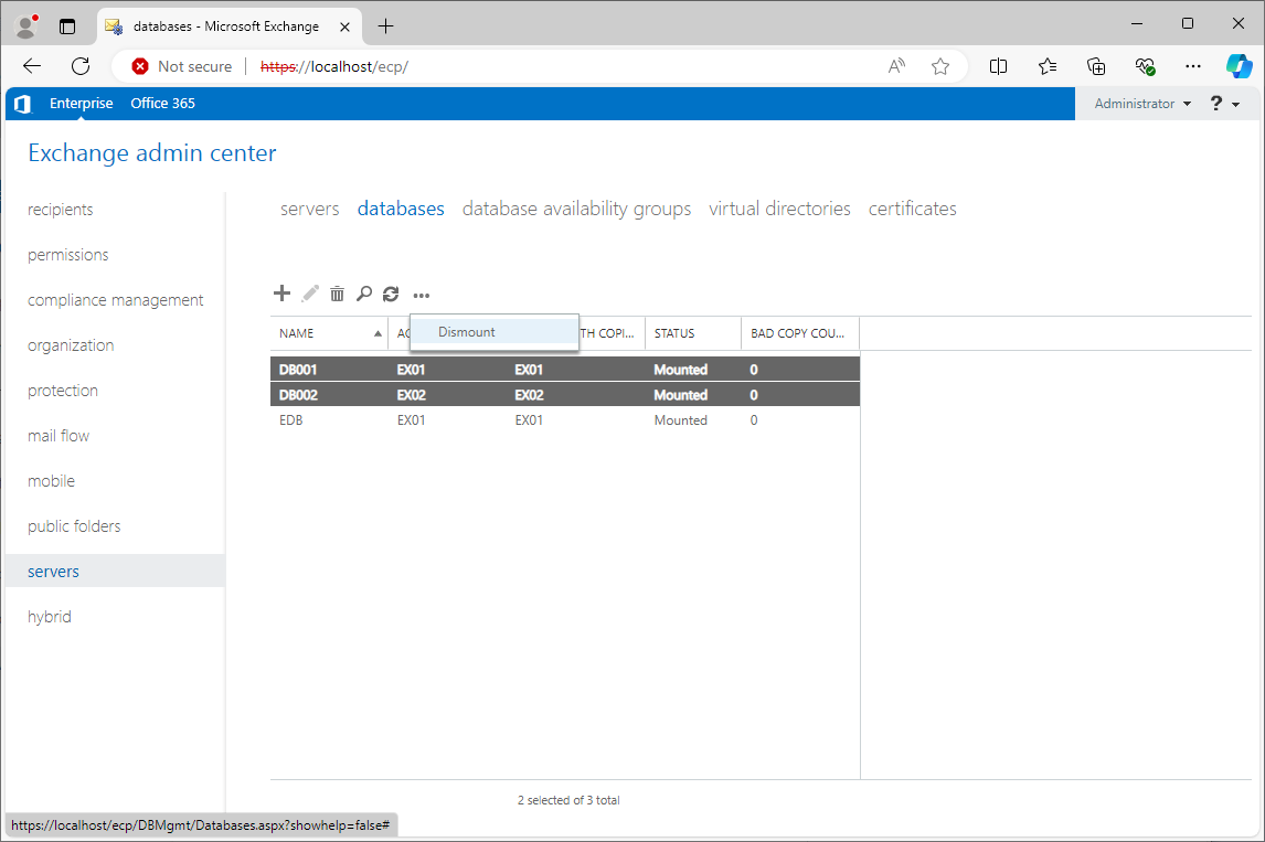 Dismount-Database "EDB" -Confirm:$False