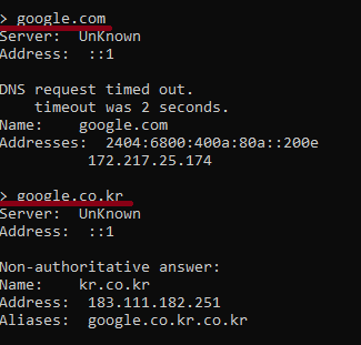 Nslookup 시 co.kr이 두번나오는 현상 co.kr.co.kr
