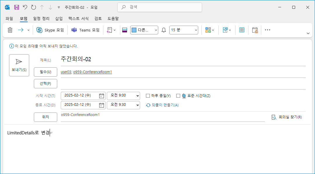 LimitedDetails 권한은 제목과 위치(회의실)을 볼 수 있다고해요