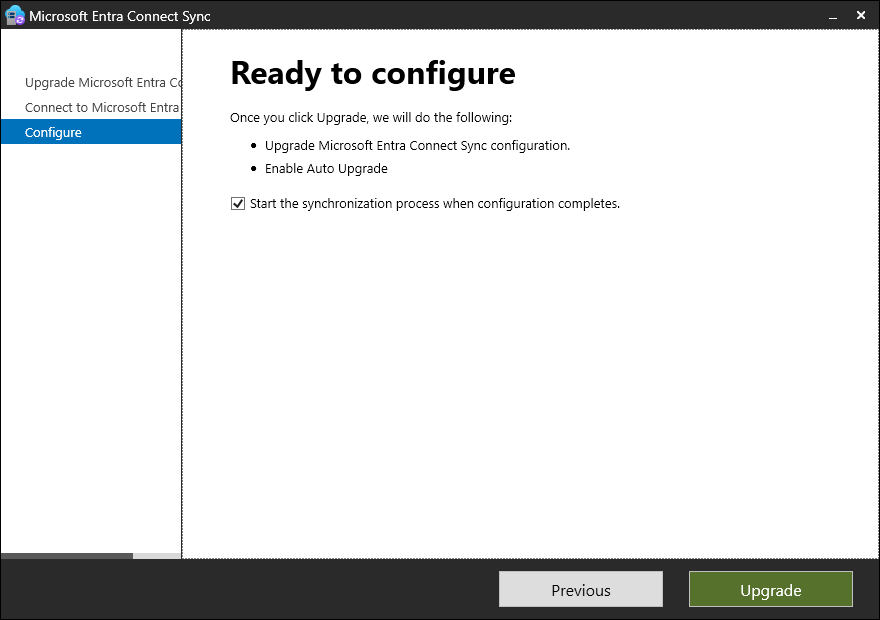 다운받은 AzureADConnetor.msi 파일 실행 후 Upgrade 클릭