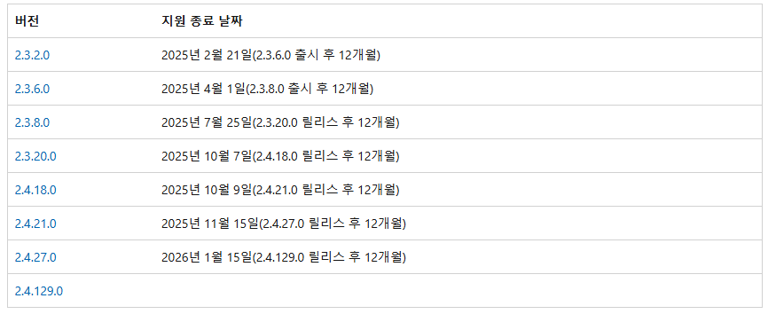 현재 EOS 되지 않은 버전 중 제가 설치한 버전보다 상위버전으로