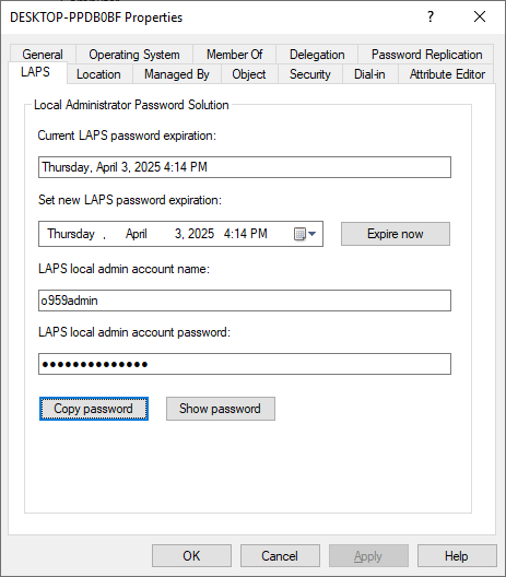 msLAPS- 에 대한 속성이 생긴 것을 확인 가능합니다