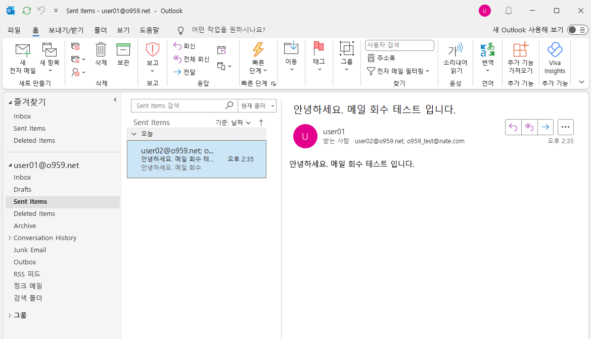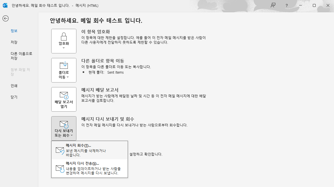 Outlook에서 제공하는 메일 회수 기능을 확인하고 사용해보도록 하려고 해요