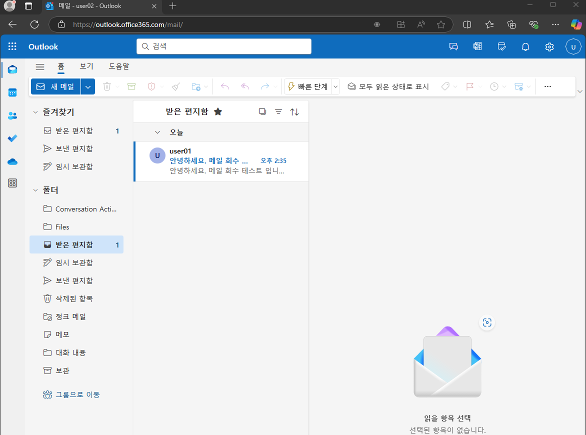 회수를 하고 보니 진짜 메일이 삭제되었어요.