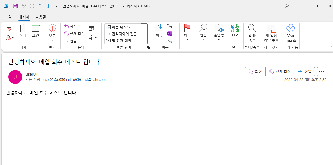 두번째로, 수신자가 읽은 메일도 메일 회수가 불가능 합니다