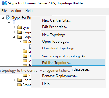 이후 [Skype For Business Server] 우 클릭 후 토폴로지를 게시해주세요