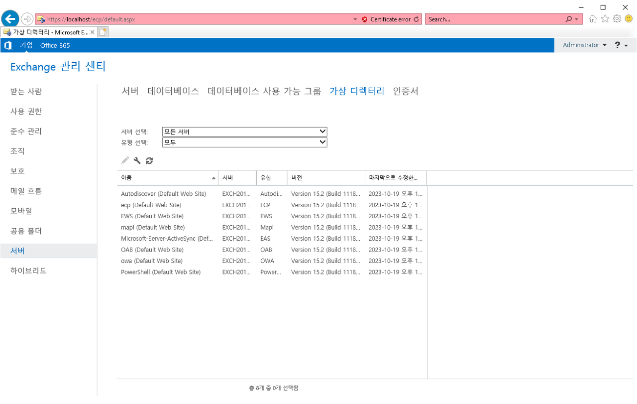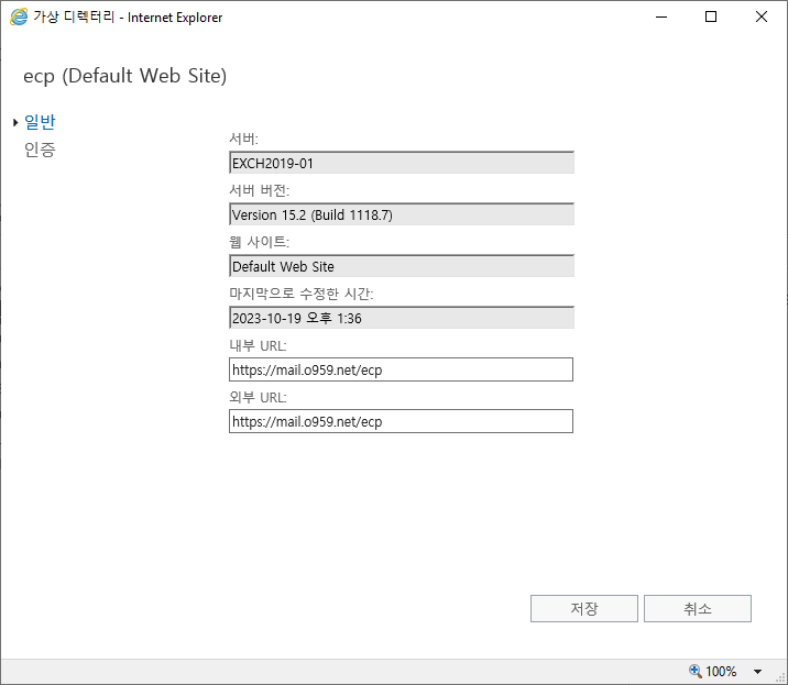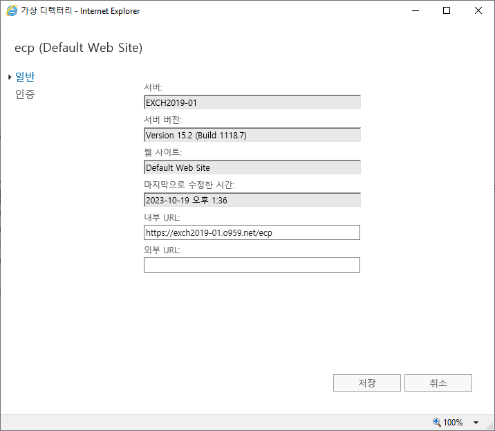 이후 동일하게 Autodiscover를 제외한 나머지 디렉토리에 대하여 내/외부 URL을 설정해 줍니다.