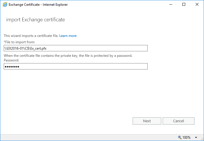 Import Exchange Certificate 클릭