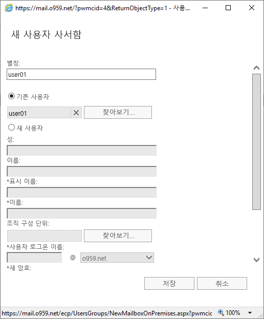 별칭도 사용자 계정과 동일하게 기입 한 뒤 저장을 클릭합니다