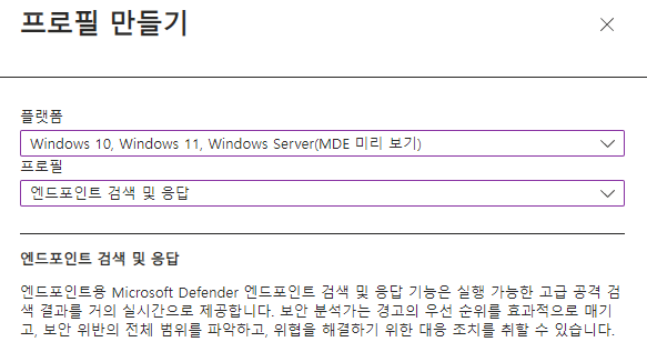 엔드포인트 탐지 및 대응 정책으로 온보딩을 진행하려고 해요