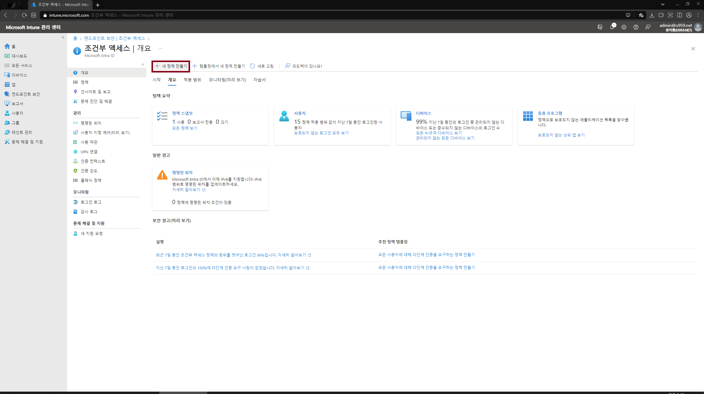 인튠 관리센터 - [엔드포인트 보안] - [조건부 액세스] 클릭