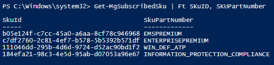 Get-MgSubscribedSku | Ft SKuID, SKUPartNumber