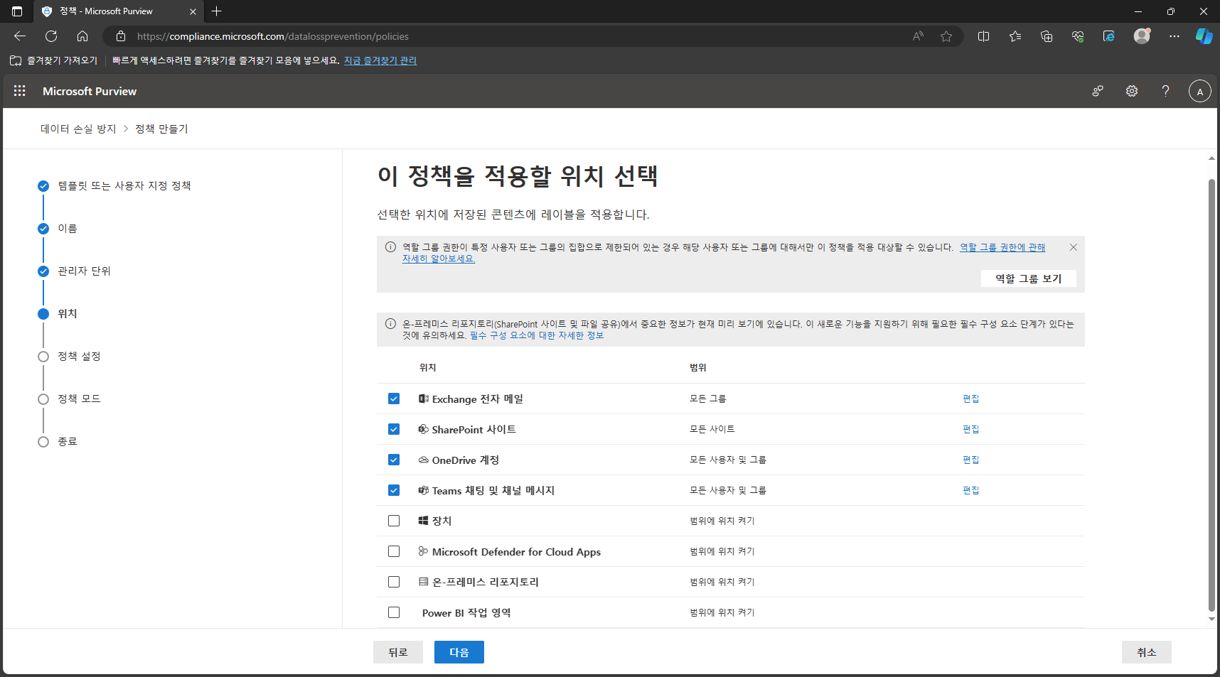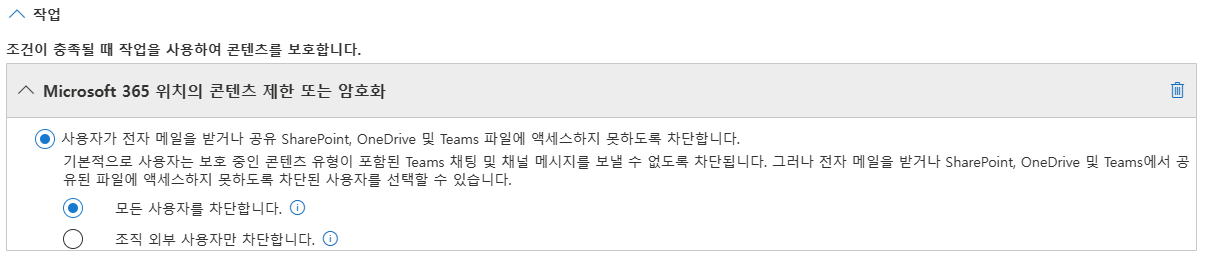 Microsoft 365 위치의 콘텐츠 제한 또는 암호화DLP 정책 생성 - 작업