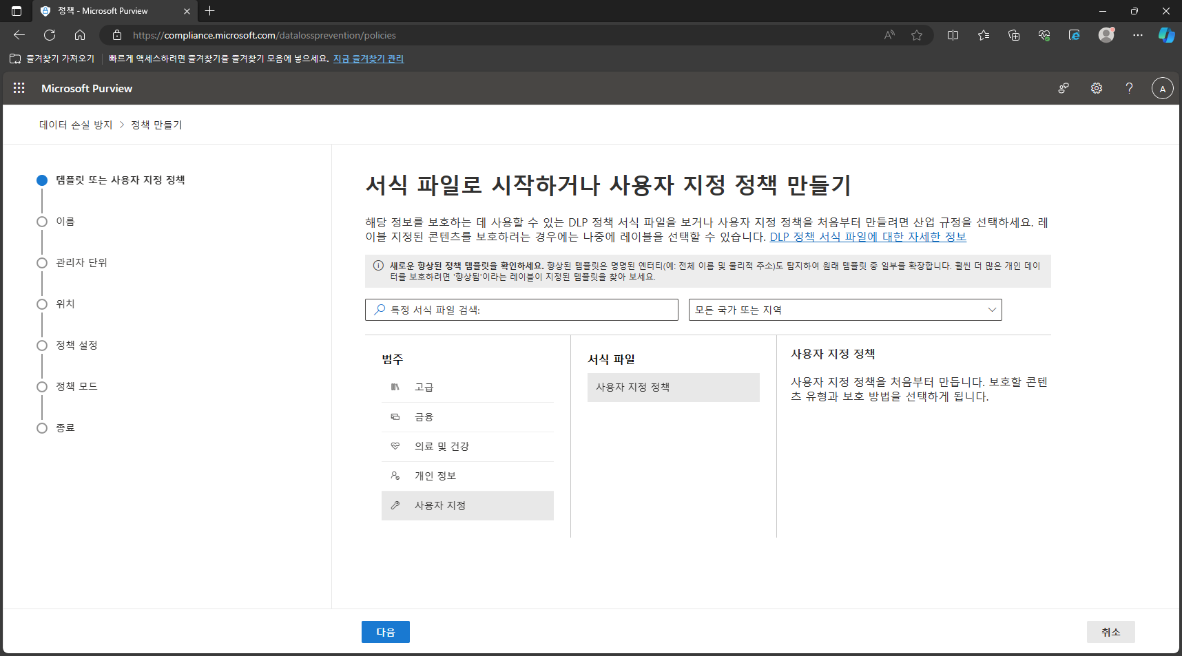 나머지 설정은 그대로 둔체 완료 클릭 후 다음 다음을 눌러 중요한 정보 유형 생성을 마무리 해주세요