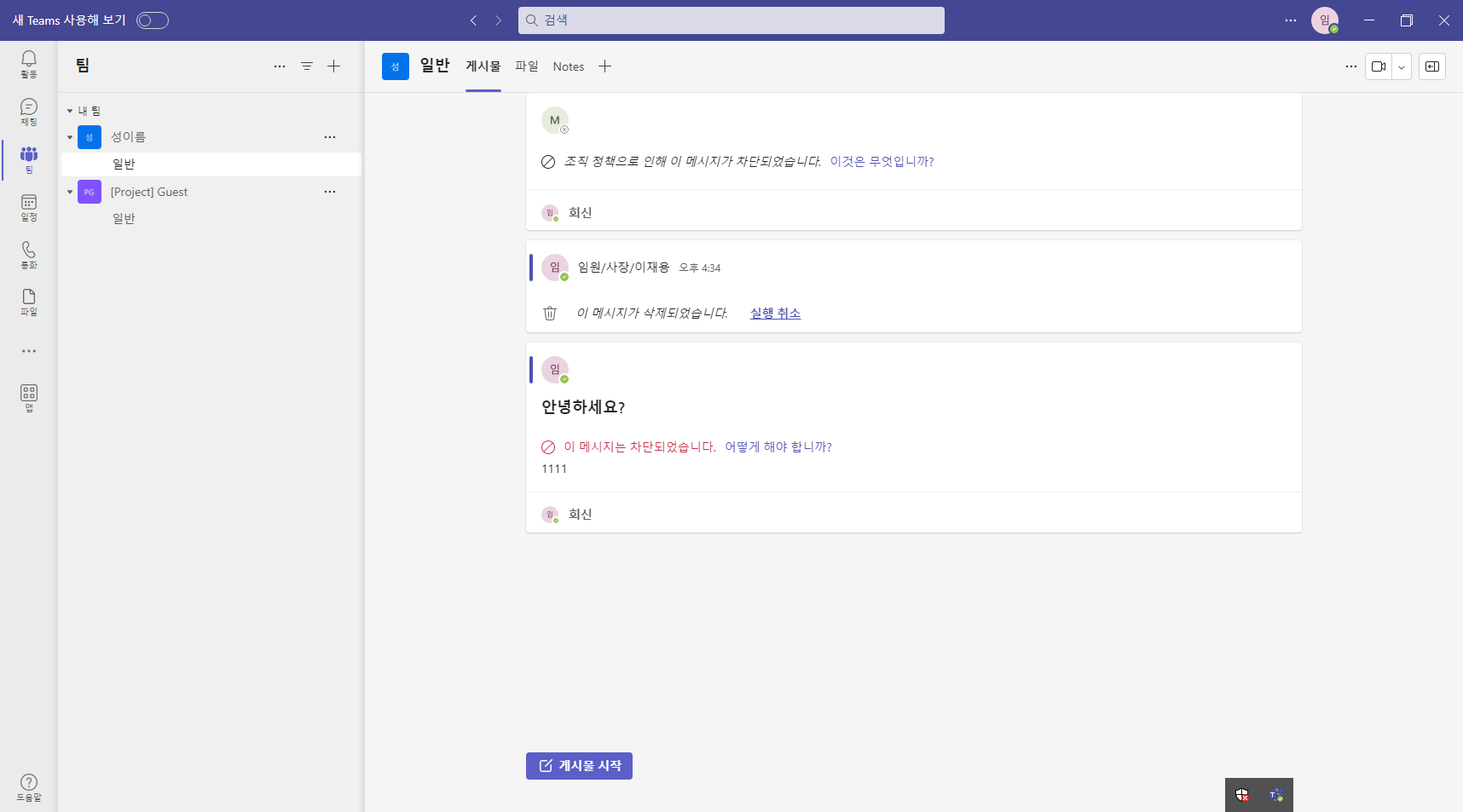 Teams/EXO/Onedrive 에서 특정 단어 차단