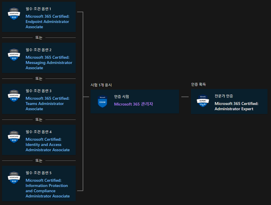 필수 조건 옵션 1~5 중 하나의 자격을 취득하고 (MD-102, MS-203, MS-700, MS-500)