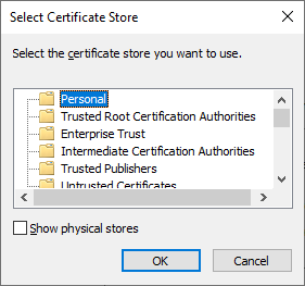 Place all certificates in the following Store 클릭 후 Browse 클릭