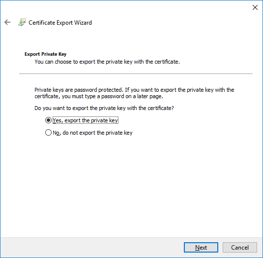 Yes Export the Private Key 메뉴가 활성화 되는지 확인