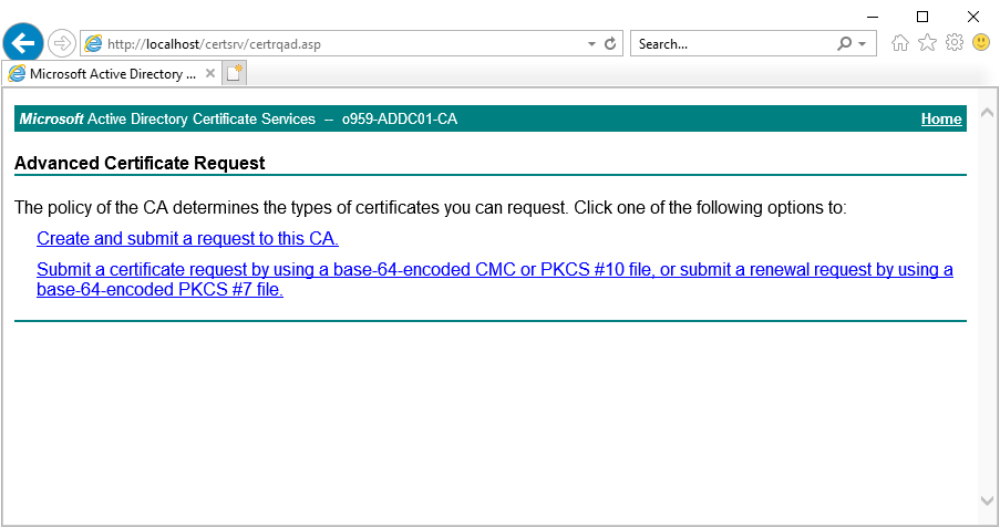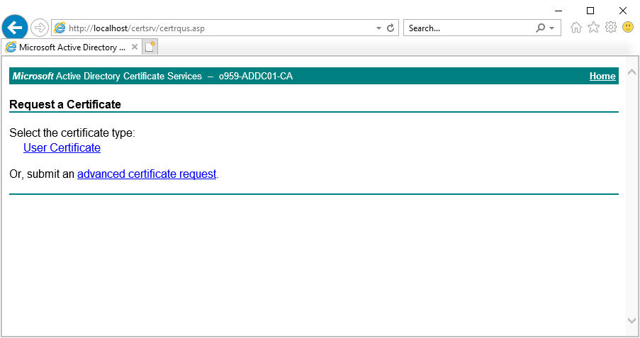 Active Directory 서버에 인증기관(ADCS) 기능이 설치되어 있습니다