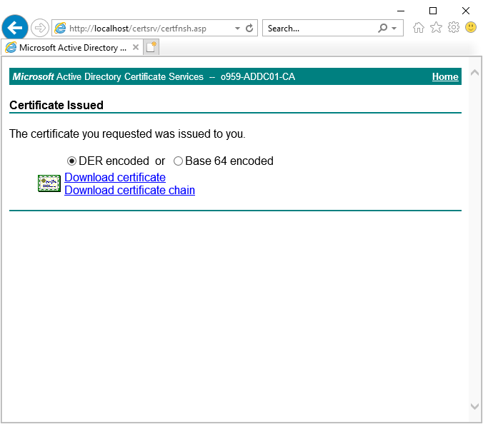 정상적인 생성 확인을 위해 ADCS가 설치된 곳에서 인증기관에 접속해줍니다