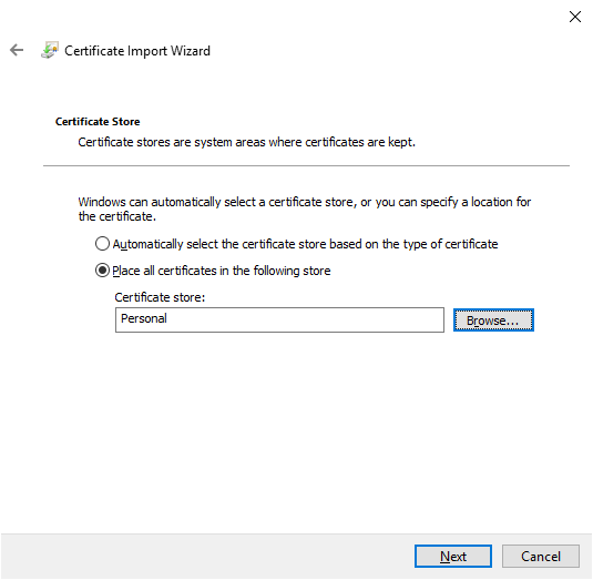 Place all certificates in the following Store 클릭 후 Browse 클릭
