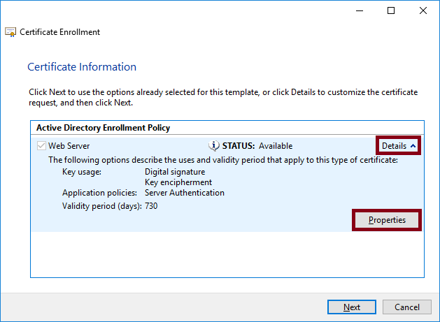 Certificate Template을 Web Server로 변경하고 Submit을 눌러주세요