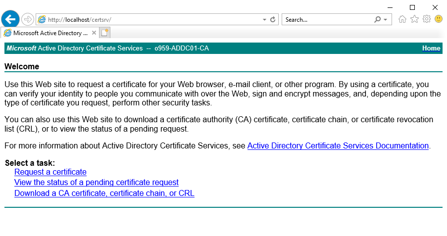 Active Directory 서버에 인증기관(ADCS) 기능이 설치되어 있습니다