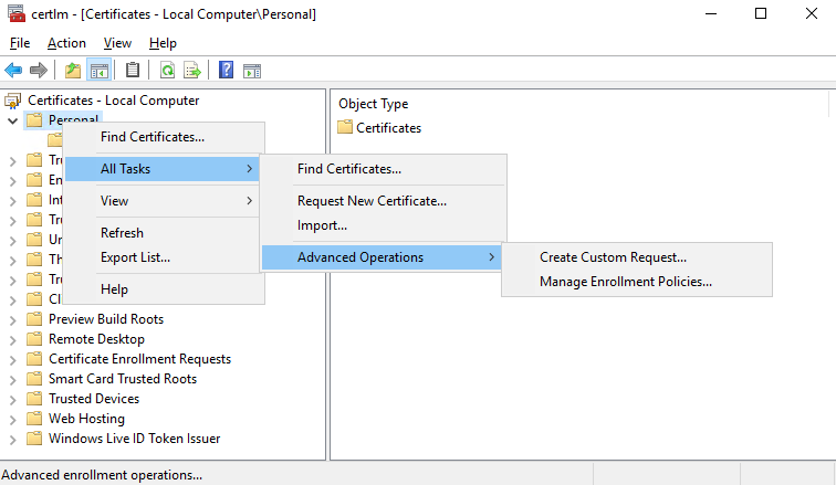 Personal 우클릭 - [All Tasks] - [Advanced Operations] - [Create Custom Request] 클릭