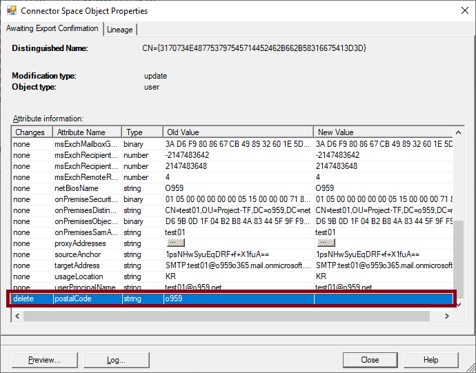 이후 업데이트 내역을 보면 postalCode의 값이 Delete되어 Null 값인걸 확인 할 수 있어요