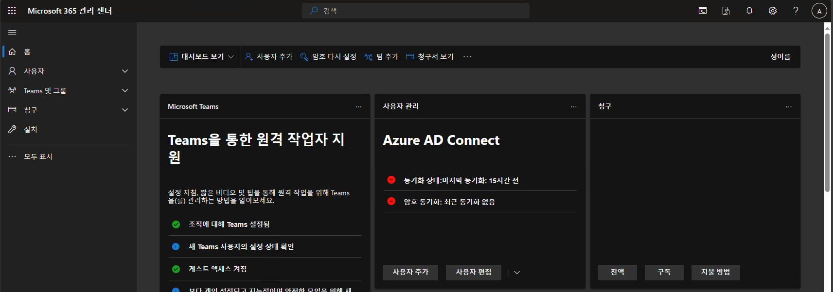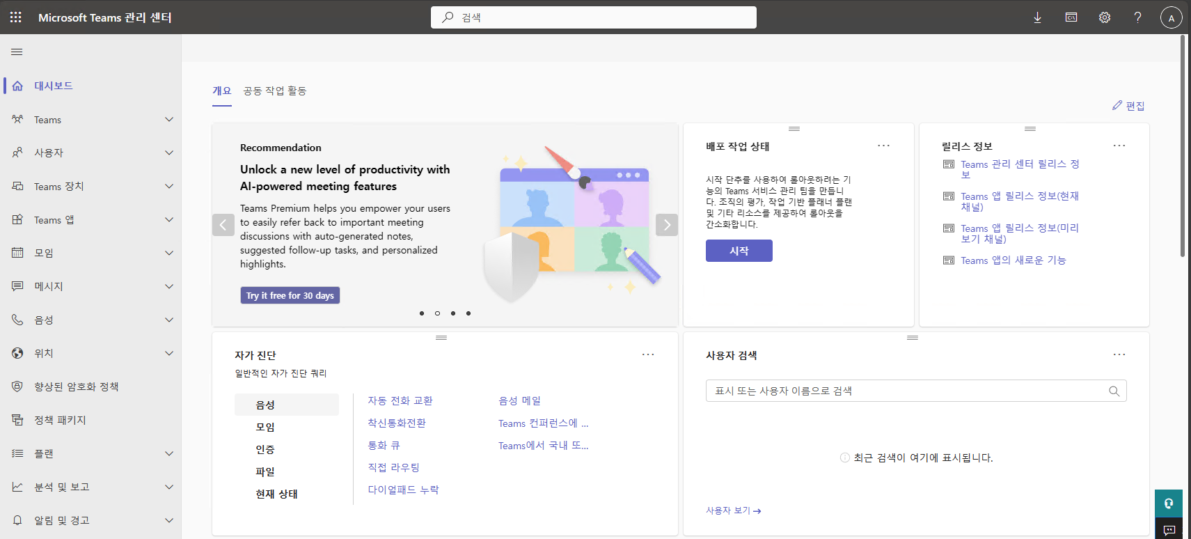 어느새부터 생각해보니 Teams 관리자 페이지가 영어로 나오더라고요