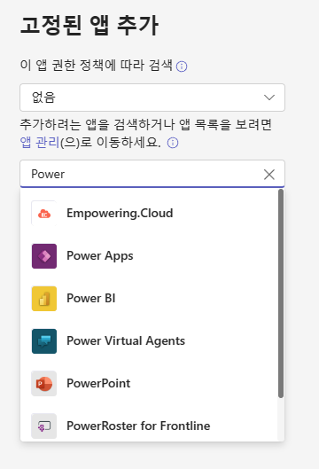 고객사에서 Teams의 좌측 기본 앱들을 사용하지 않거나
