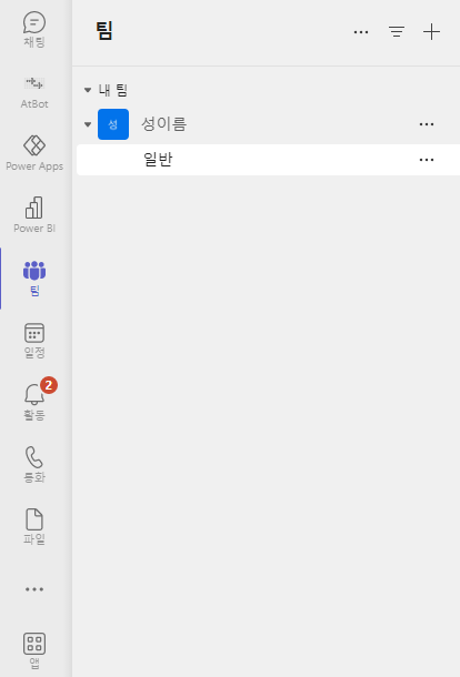 사용자의 기본 Teams App 상태는 위와 같습니다