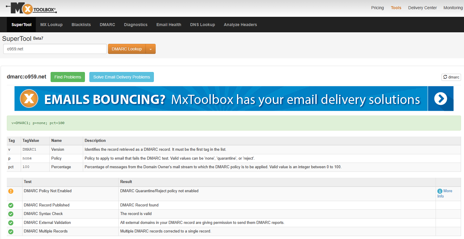 DMARC 등록 확인을 해보기 위해 mxtoolbox 사이트를 이용하려고 해요