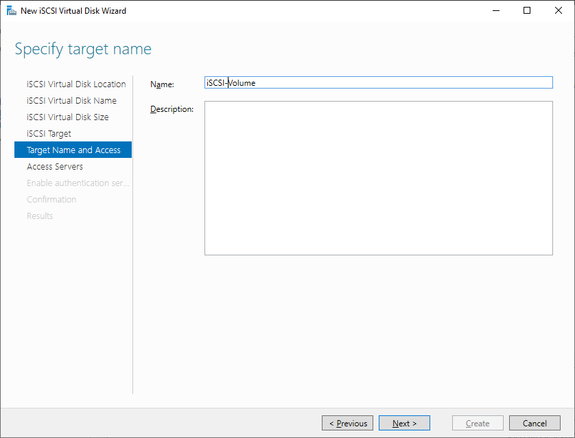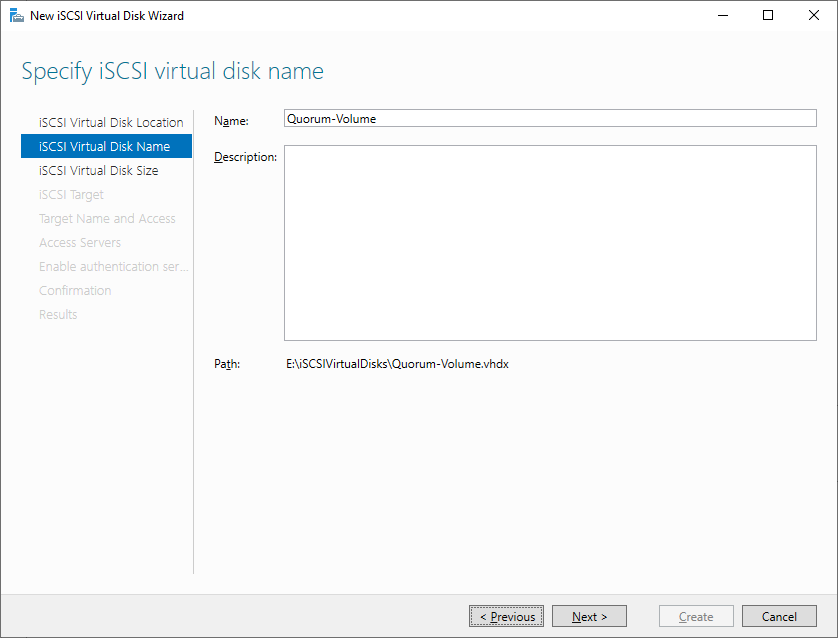 iSCSI 가상 디스크 이름을 지정해주세요